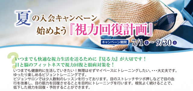 夏の新規入会キャンペーン – 始めよう『視力回復計画』