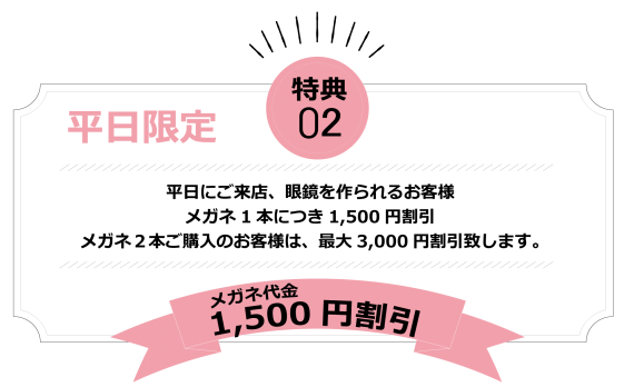 平日限定 適正化メガネキャンペーン 大好評にて2019/7/29まで延長!