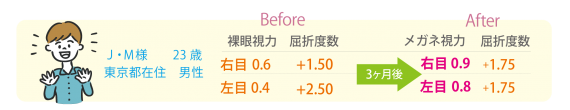 メガネの使用に関しては、非常に抵抗がありました。必要になるのも老眼鏡ぐらいだと思っていましたが、トレーナーの方に、「スポーツでもサポーターやテーピングをするように、悪くなり始めに予防や補助の目的で使ってみてください」と言われ使ってみると見え方が楽になるだけでなく目も非常に疲れにくくなっていきました。