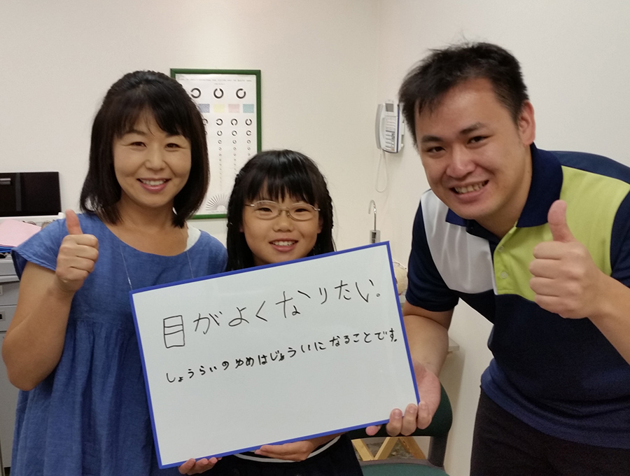 目の使い方の大切さ、子どものしつけ、大きな視点で物事を考えるなどのお話もありがたく、前向きに治療にとりくめるのも先生やスタッフの励ましのおかげだと思います。