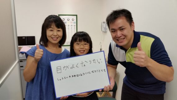 子どもの視力低下は進行が早く、1.0ある視力も一年で0.5まで下がる事もあります。これまでの生活習慣を見直して、家族で取り組んでいる成果だと思います。この調子で、是非、メガネの必要のない生活を送って頂きたいとおもいます。